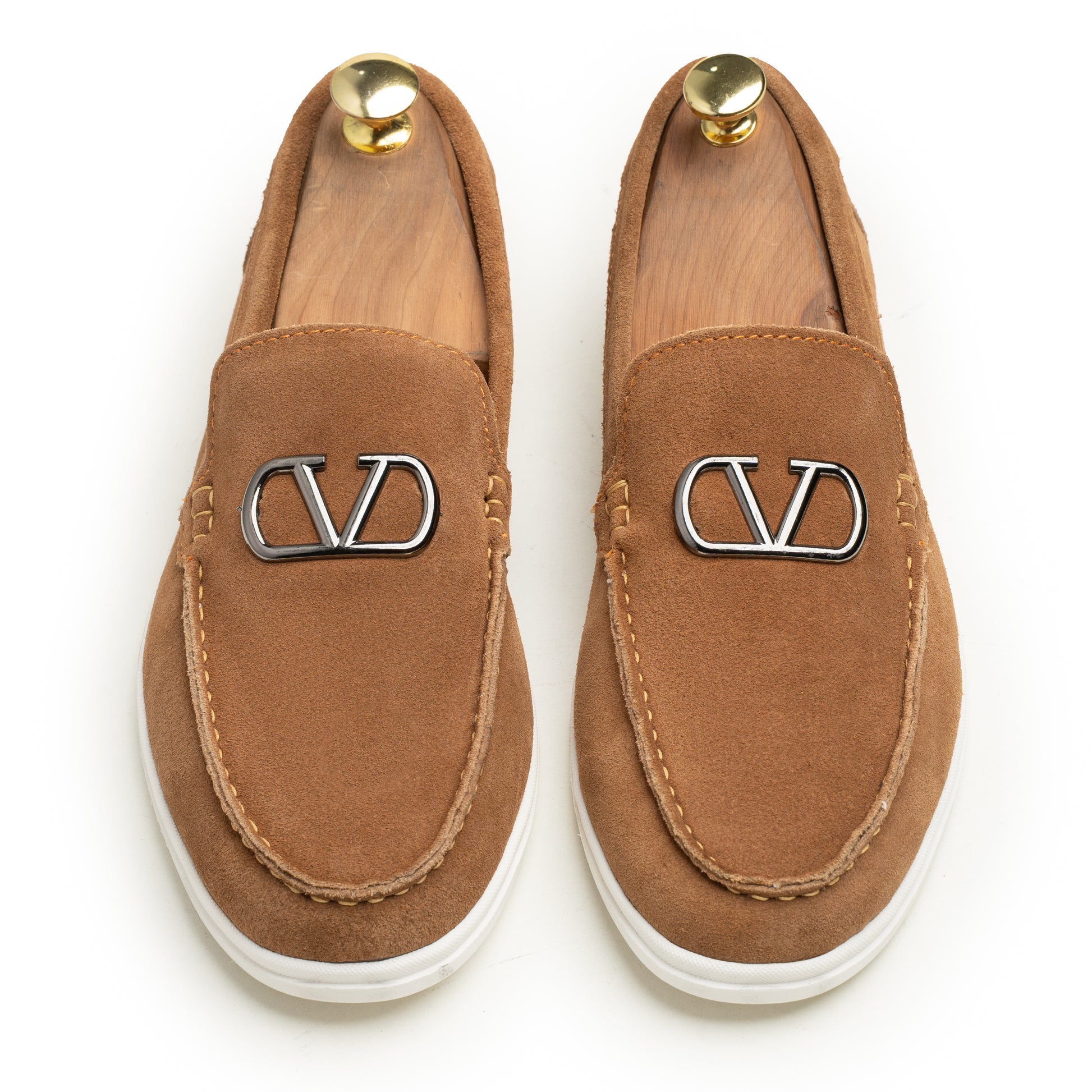 Elevate your look with the SAMAS Leather Tan Suede Loafers - where refined craftsmanship meets modern elegance. These loafers are made from high-quality suede leather, offering a soft and luxurious texture. The signature metallic emblem on the upper adds a sophisticated touch, while the hand-stitched detailing enhances durability and style. Designed with a cushioned insole and flexible rubber sole, these loafers ensure comfort and ease for all-day wear. Perfect for both casual and semi-formal occasions.